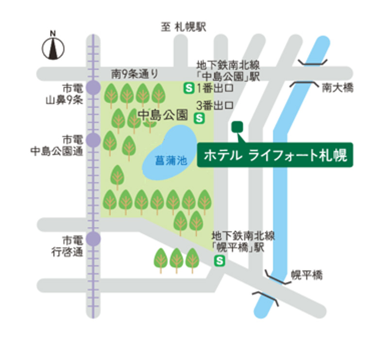 ※地下鉄南北線「さっぽろ」駅から地下鉄南北線「中島公園」駅まで所要時間約5分 - タクシーではJR札幌駅から約10分