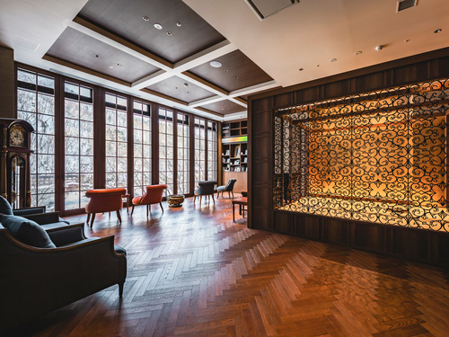 一面に広がる大きな窓から景観を望む内湯と、渓流からの澄んだ空気に抱かれる露天風呂。