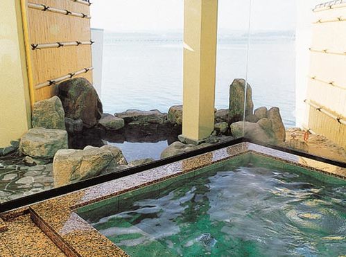 風呂案内 七尾湾に沿って男女共18mの大浴槽、陶器風呂、ジェットバスなどバラエティにとんだお風呂が楽しめます。又、身障者、高齢者の方に車椅子で脱衣所まで行ける、家族貸切風呂もあります。