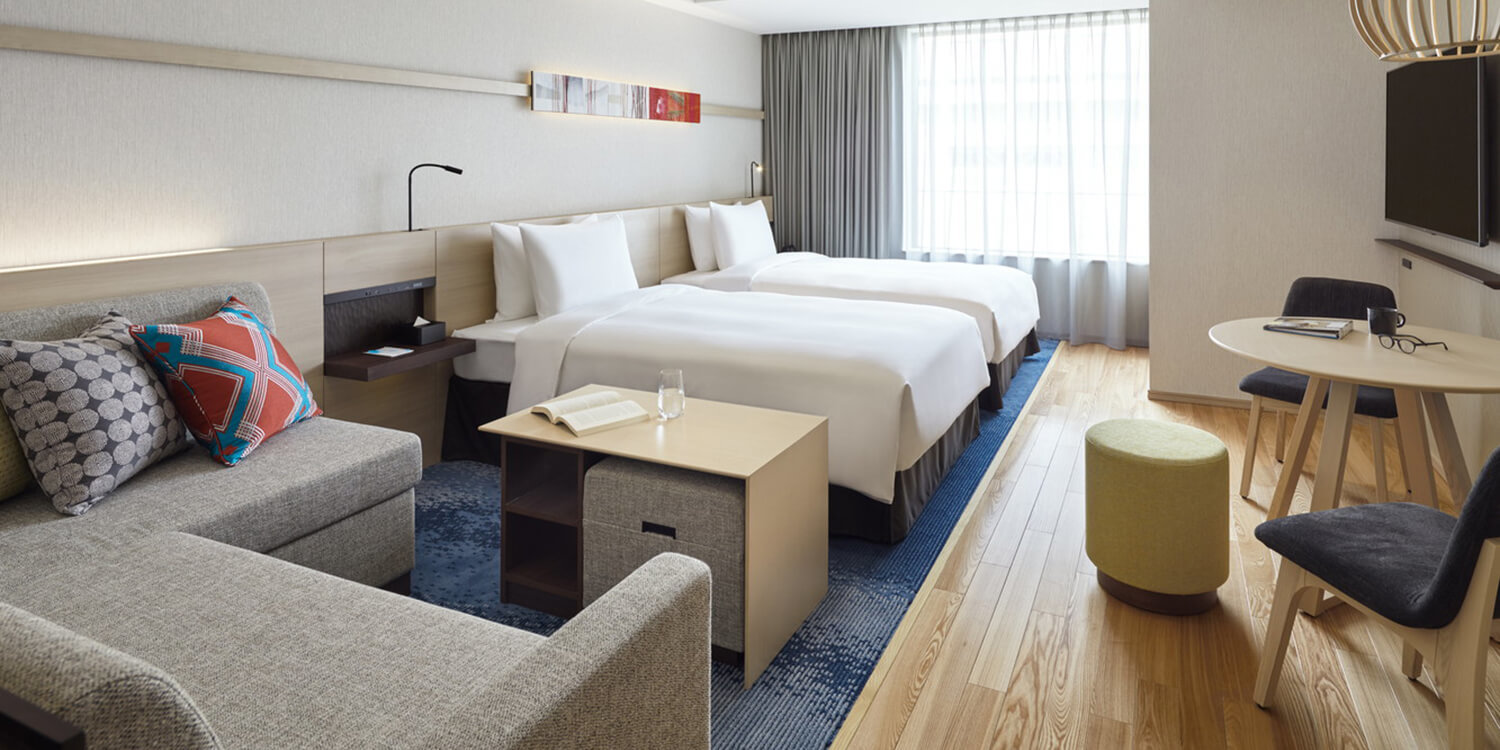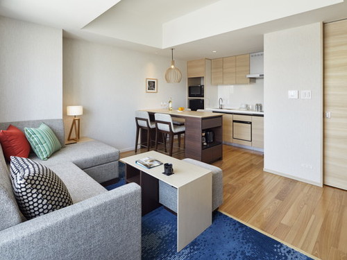 キッチン設備を整えた客室の空間が、旅先であってもご自宅にいるような快適な滞在を提案します。金沢を拠点に北陸をゆったり満喫する旅行はもちろん、ビジネスにも最適なロケーションとしてご利用いただけます。ようこそ、もうひとつの我が家へ。