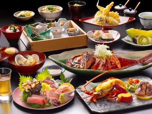 お食事は、伊豆の新鮮な魚介類を贅沢に使ったフレンチ懐石、和懐石、鉄板焼きをご堪能ください。