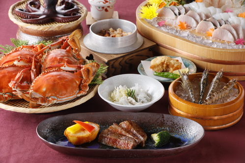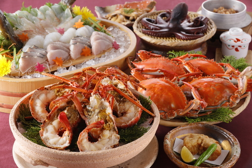 夕食は海の幸をふんだんに使用した豪華な会席。食材の仕入からこだわり「おいしい魚を一番おいしく味わう」という