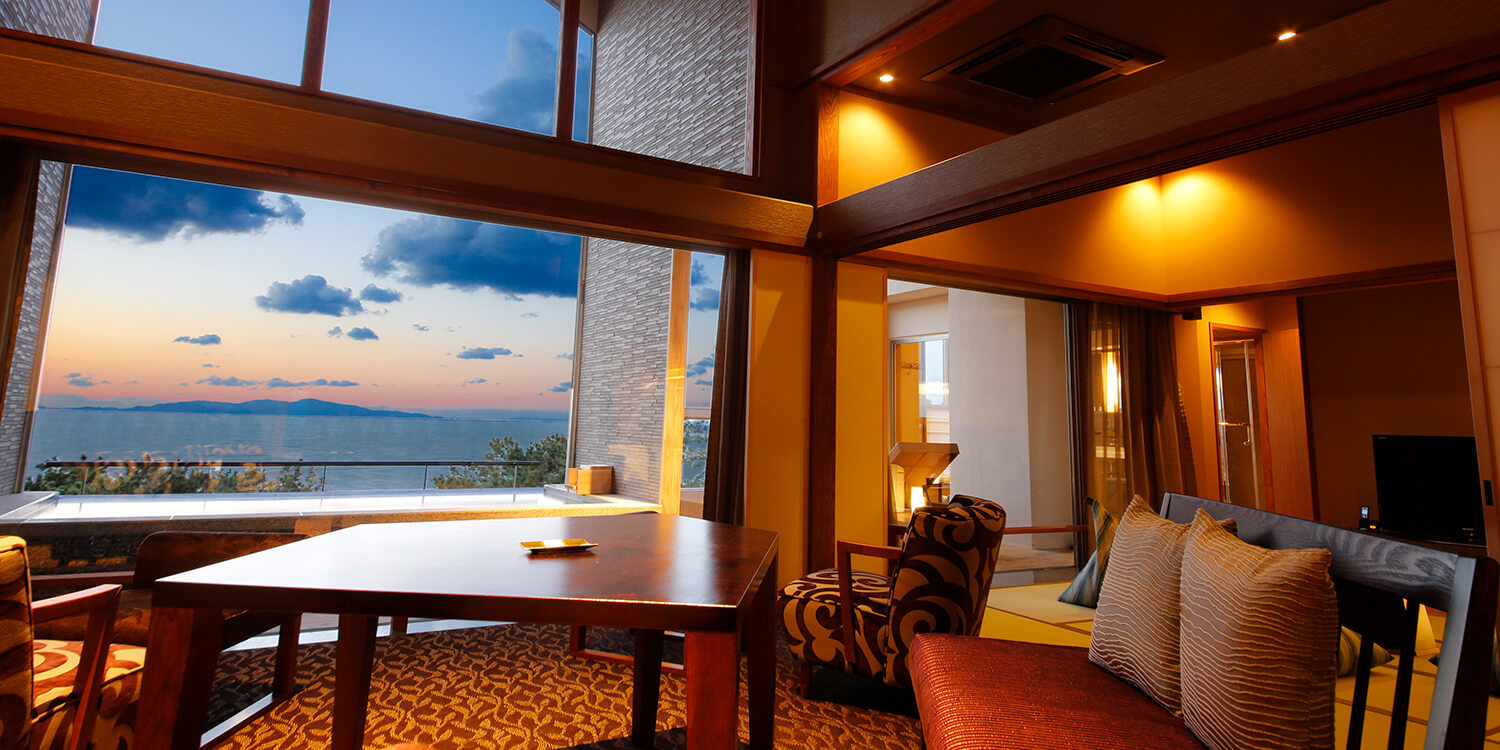 総客室数 29室 部屋設備 ボディソープ、シャンプー、リンス、ハンド&フェイスソープ、ハミガキセット、洗顔液、女性化粧品、化粧水、乳液、コットン、ヘアバンド(一部の部屋のみ)、男性化粧品、カミソリ、シェービングクリーム、ヘアブラシ、ドライヤー、バスタオル、フェイスタオル、スリッパ、綿棒、日本茶セット、コーヒーセット(一部の部屋のみ)、テレビ(無料)、冷暖房、冷蔵庫、ミニバー、加湿器、空気清浄機、電気ポット、金庫、CDプレイヤー(一部の部屋のみ)、DVDプレイヤー、ブルーレイ対応プレイヤー、洗面台、シャワーブース、洗浄便座付トイレ、ゆかた、バスローブ(一部の部屋のみ)、ハンガー