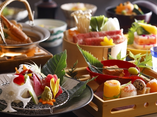 【最高級!タグ付活松葉蟹2杯相当♪雅の膳】かに刺し、焼きガニ、蟹すき、茹でかにの四種料理をご堪能