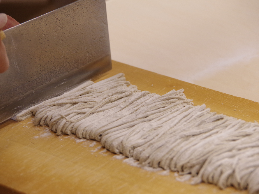 昼食にそばの提供とそば打ち体験を実施しており、そば打ちの体験時間は予約時に相談して決定します。