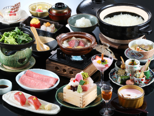 夕・朝食ともにお部屋や個室でのお食事をお選びいただけます。※食事内容はプランによって異なります。